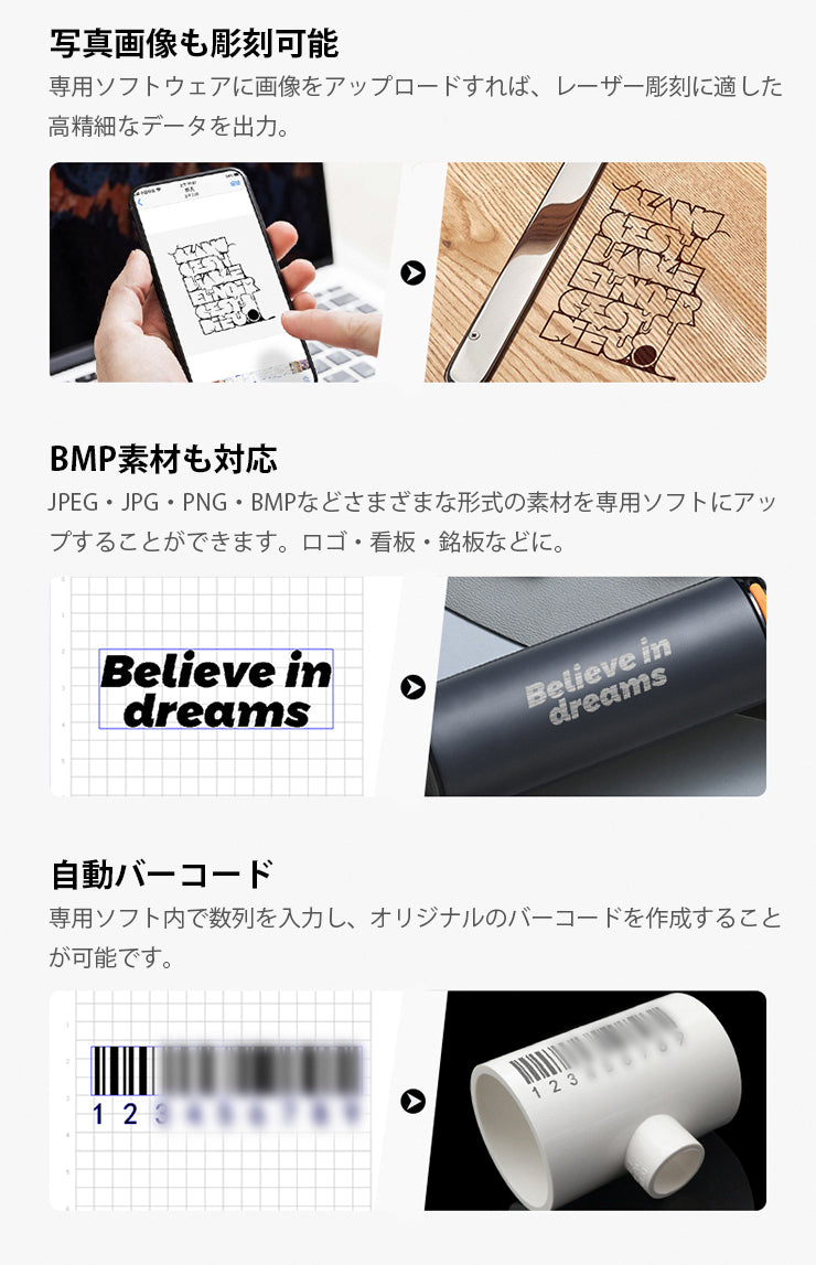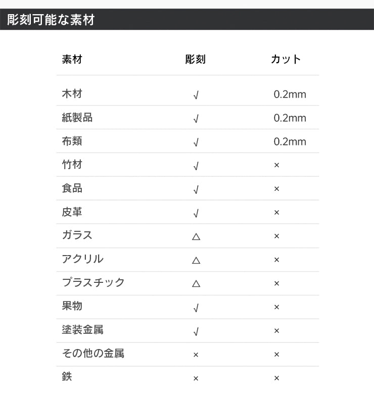 ※材質、表面処理によって彫刻できない場合がございます(100%彫刻が出来ることを保証するものではございません)